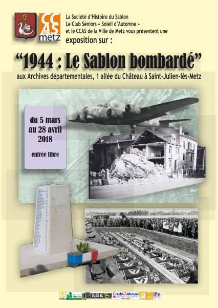 La Société d’Histoire du Sablon, le Club Sénior "SOLEIL D’AUTOMNE" et le CCAS de la ville de Metz vous présente l’exposition "1944: Le Sablon Bombardé".