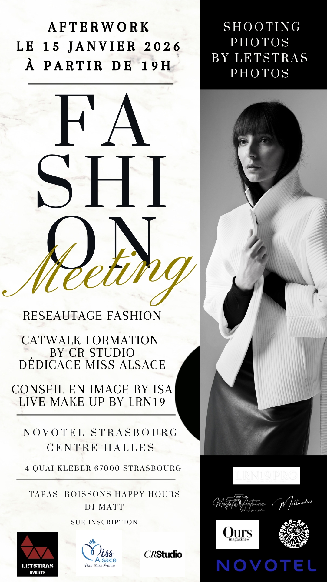 Nous vous attendons nombreux pour le 4e Afterwork Fashion Meeting qui aura lieu au Novotel Strasbourg Centre Halles Strasbourg le jeudi 15 janvier 2026 à partir de 19h !