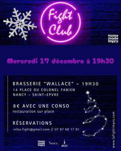 Mercredi 17 décembre 2025, rendez-vous à 19h30 à la Brasserie Wallace, 14 place du colonel Fabien à Nancy, pour notre rendez vous mensuel Apéro Impro!