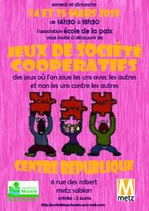L’association Ecole de la paix, vous propose de passer un moment convivial, en famille ou entre amis, grâce aux JEUX de société COOPÉRATIFS.