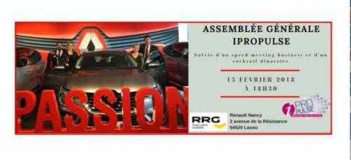 Assemblée Générale iPropulse suivie d’un speed-meeting, d’un cocktail dînatoire et d’une découverte de la gamme Renault.