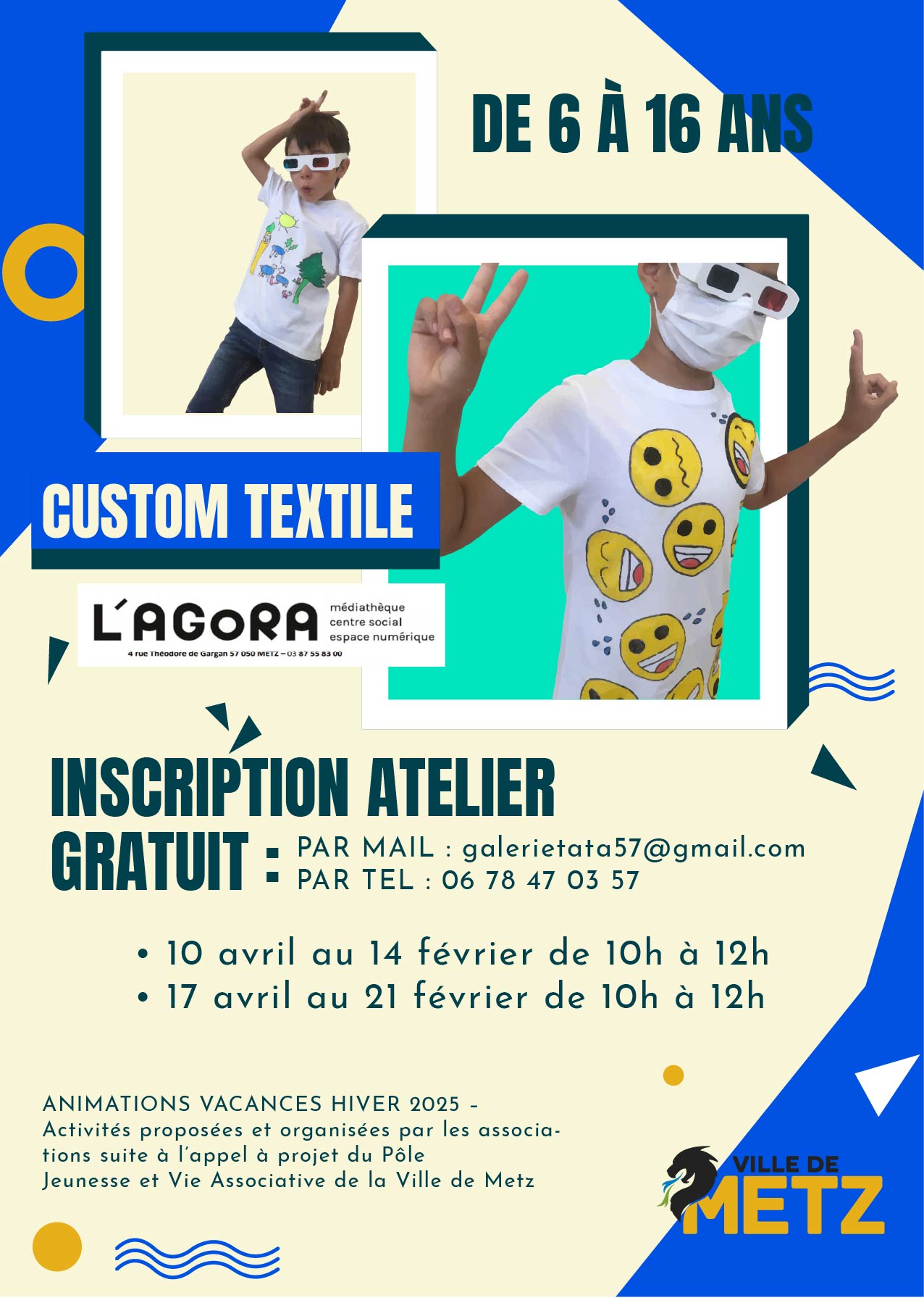ATELIERS GRATUITS pour des ENFANTS DE 6 À 16 ANS