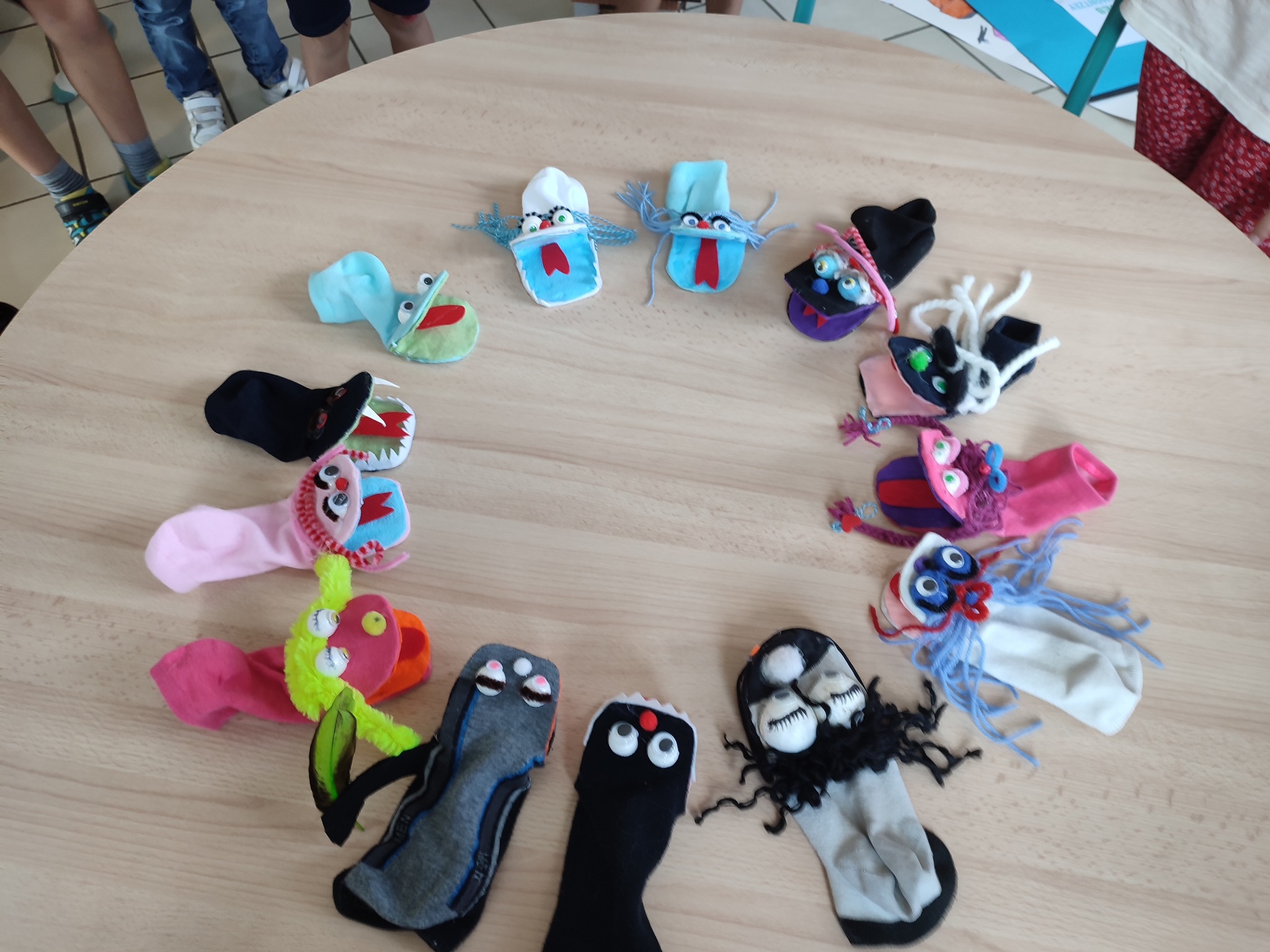 vous repartez avec votre marionnette, vous venez avec une vieillechaussette propre,( taille du 30 au 38 ) atelier à partir de 7 ans (usage de pistolet à colle chaude réservée à l'accompagnant) enfants non accompagnés d'un adulte majeur ne seront pas acceptés. 12 enfants maximum par atelier, prmiers arrivés pemiers inscrits