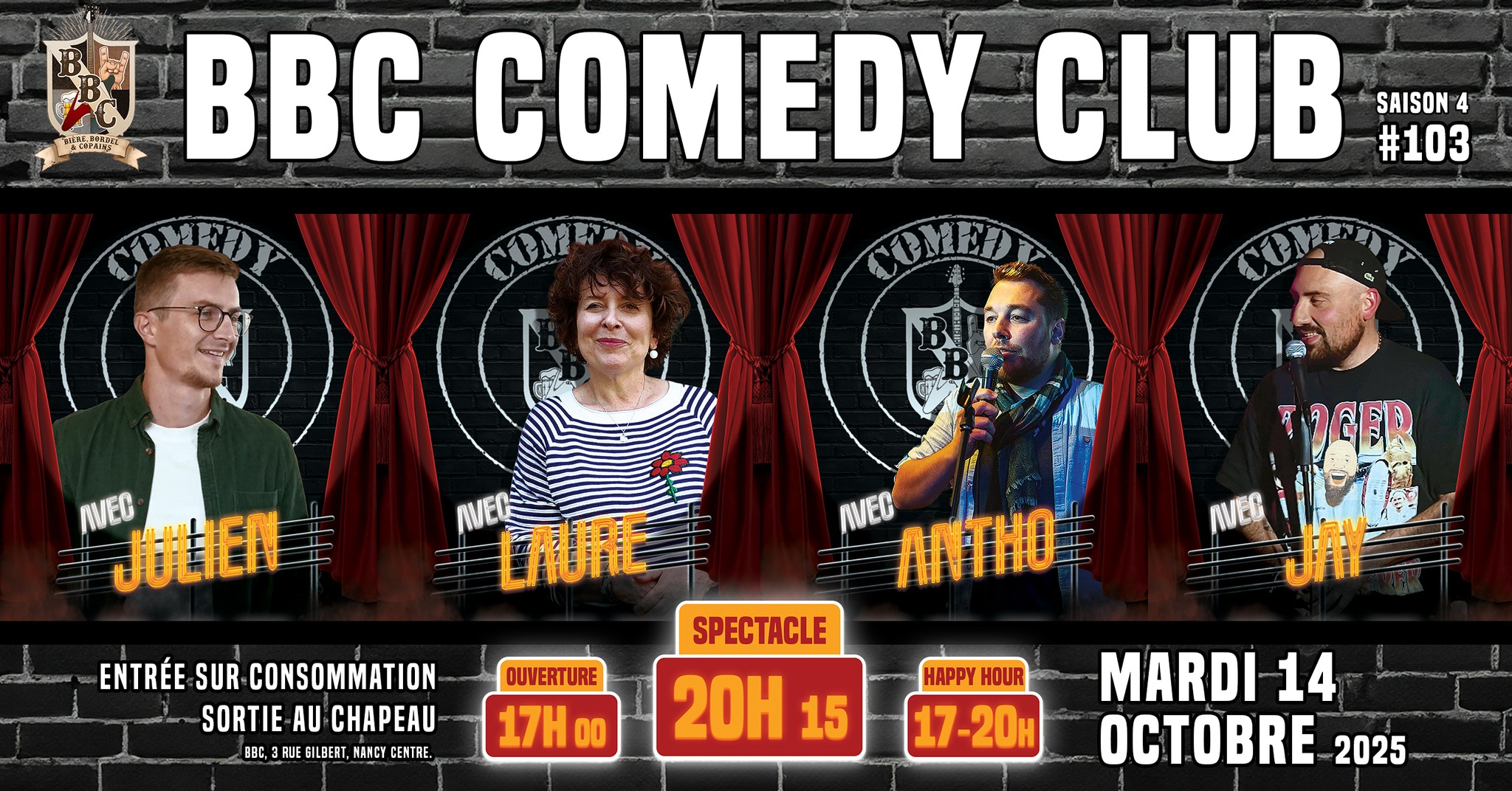 🎤🤣 Édition #103 du BBC Comedy Club (saison 4) – Mardi 14 octobre à 20h15 !