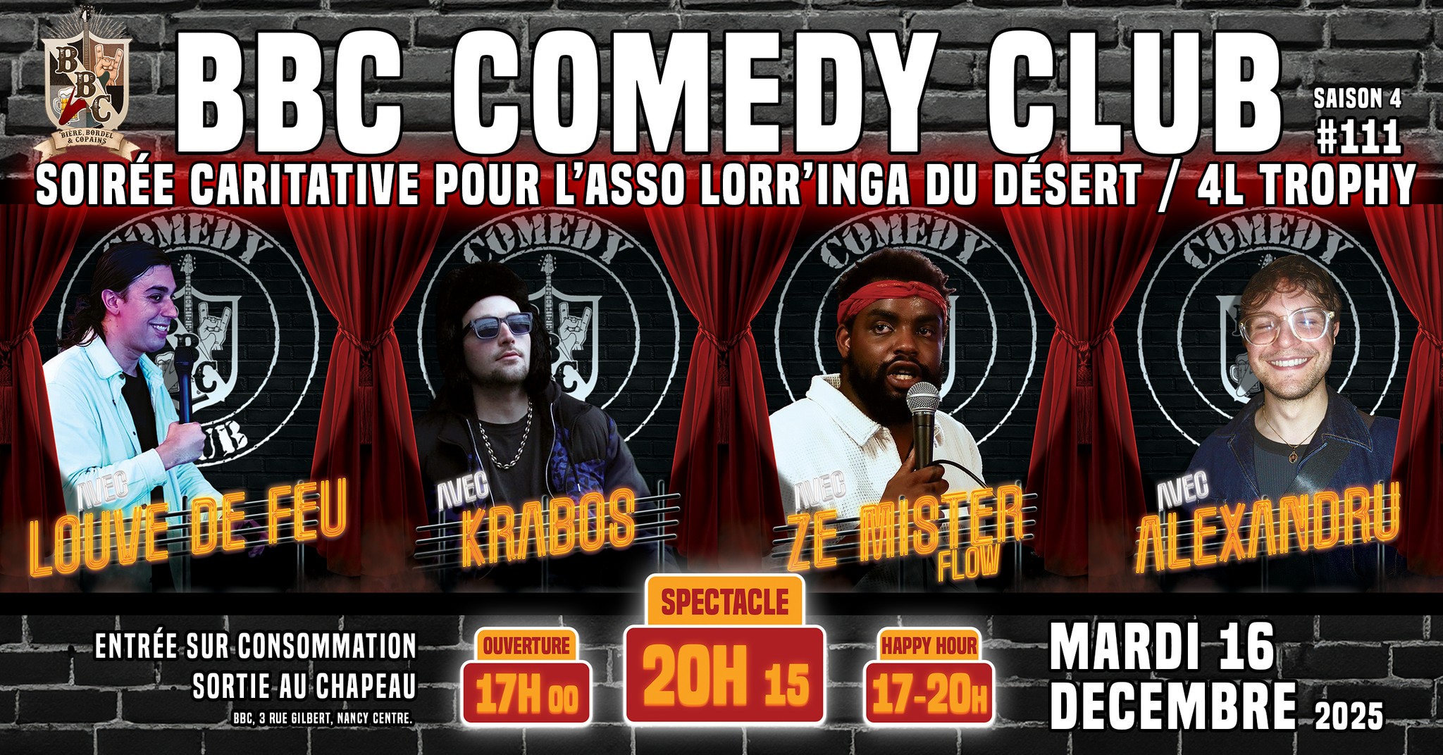 🎤🤣 Édition #111 du BBC Comedy Club (saison 4) – Mardi 16 décembre à 20h15 !