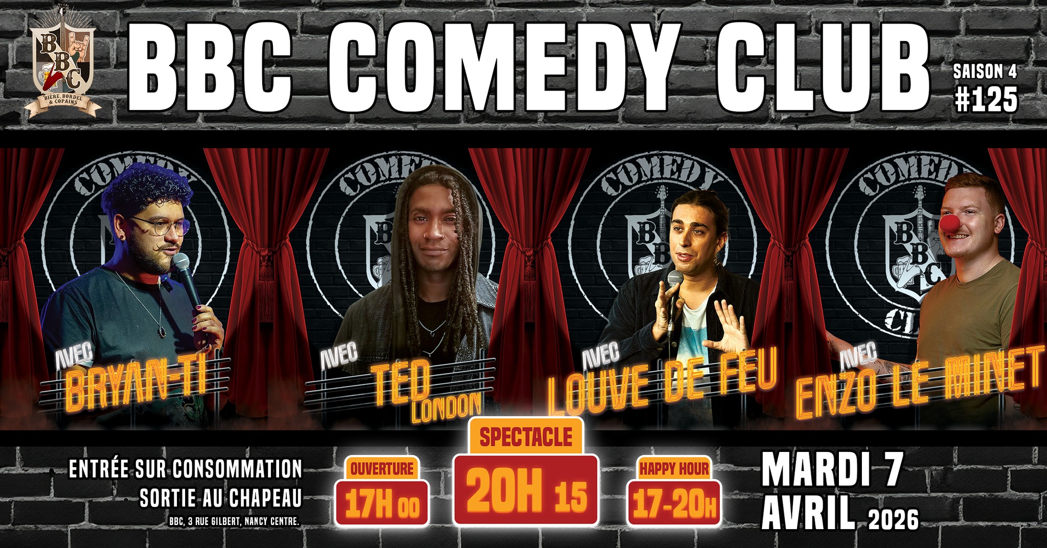 🎤🤣 Édition #125 du BBC Comedy Club (saison 4) – Mardi 7 avril 2026 à 20h15 !