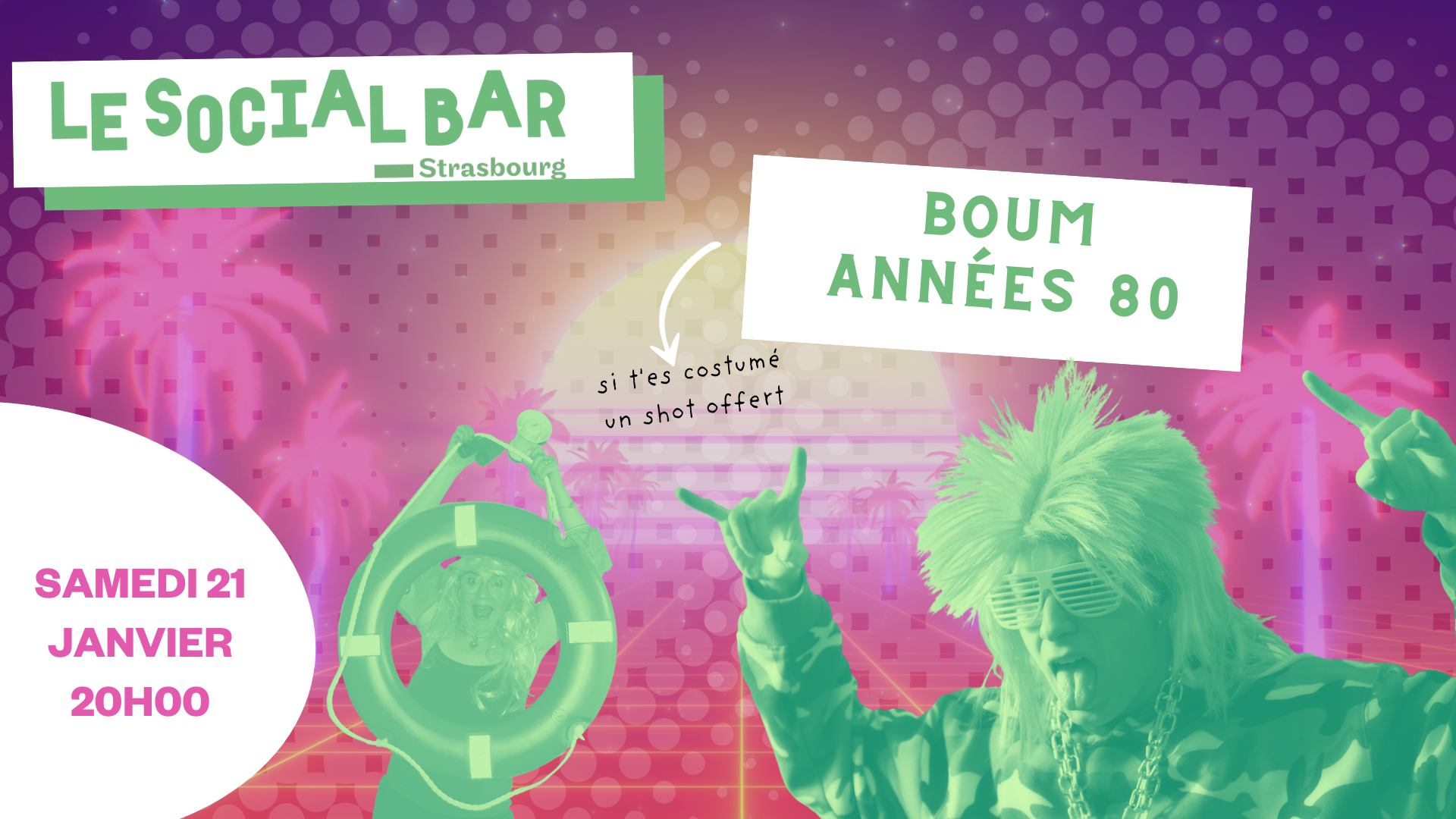 Et oui elle est de retour, la Boum spéciale année 80 revient. Comme à chaque boum mensuel si vous venez costumé au thème de la soirée le shot est offert de quoi bien commencer la soirée