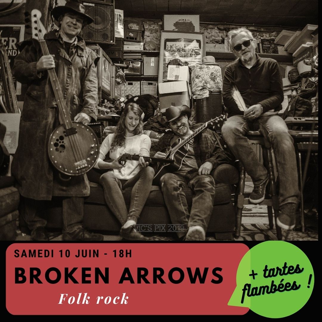 Venez à pied ou à vélo au concert des Broken Arrows, samedi 10 juin à 18h au Ravito des Cyclos ! Du très bon rock, aux tendance parfois folk, parfois grunge, inspiré de Neil Young. Buvette bio locale et tartes flambées au menu ! Fermeture à 21h, attention concert annulé en cas de pluie.