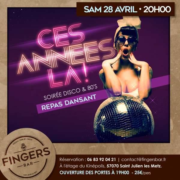 Le Fingers Bar vous propose le temps d’une soirée un repas dansant durant lequel DJ ENJOY Eric va vous mixer les meilleurs sons français et internationaux des années 70 et 80 !