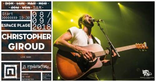Christopher Giroud est un autodidacte auteur-compositeur-interprète et guitariste qui a fait ses armes pendant plusieurs années en tant que musicien de rue entre la France, l’Allemagne et la Suisse. En 2017 il sort sont premier CD aux couleurs reggae/soul/pop/rock, il a fait la première partie de Toots and The Maytals à la Laiterie, chanté aux Illuminations de Noël, à Strasbourg Mon Amour, au Sunshine Reggae Festival de Lauterbourg, sur la grande scène Place Kléber pour la Fête de la Musique avec son groupe le 21 Juin ainsi que pour la première partie d’Alborosie à la Laiterie.