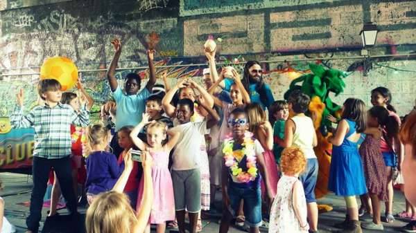 Après le coup d’envoi de la boum, des thèmes sont tirés au sort. Le DJ envoie le son tandis que Chamo nous apprend une danse ou un jeu : Gym tonic, solo de guitare, singe, cours de hard rock... l’été sera chaud avec l’Articho.
