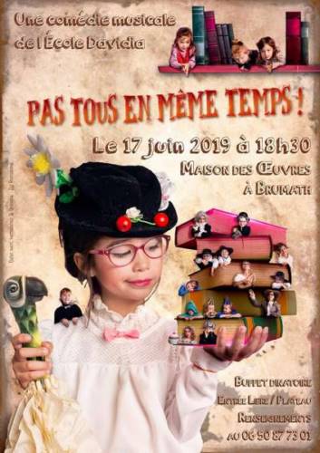 La comédie musicale "Pas tous en même temps !" créée par et pour l’Ecole Davidia vous le racontera le 17 juin prochain, 18h30 à la maison des Œuvres de Brumath.