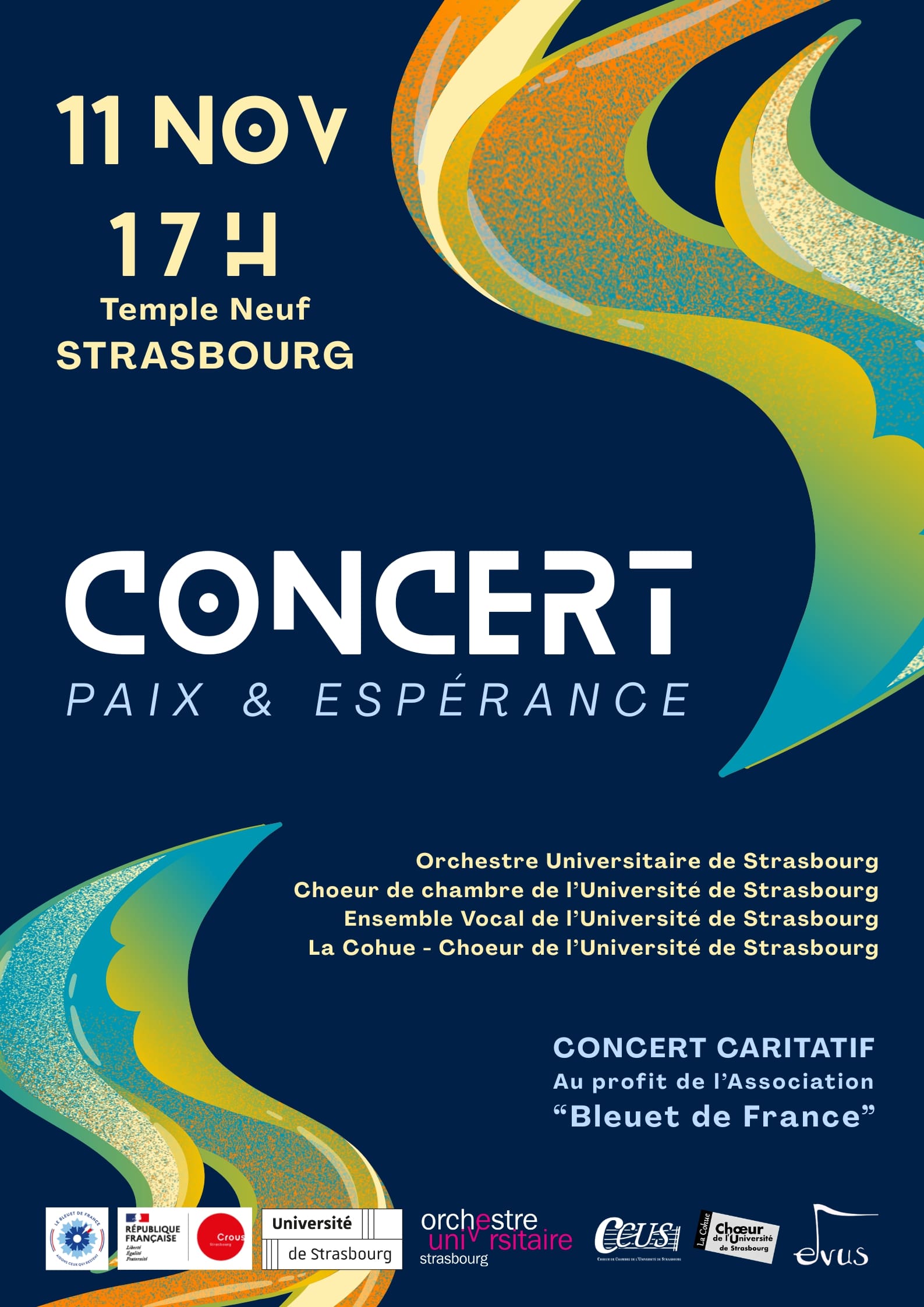 Ne manquez pas ce grand concert réunissant les trois chœurs de l’Université de Strasbourg et l’orchestre universitaire pour une célébration musicale de la paix.