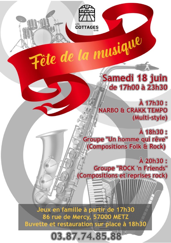 Plus que quelques jours avant notre concert à l'occasion de la fête de la Musique en partenariat avec le centre centre Socioculturel « Les Cottages », le 18 juin 2022 ( 86 Rue de Mercy, Metz la Grange Aux Bois ).