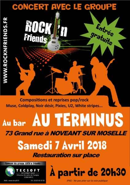 ROCK’n Friends vous donne rendez-vous le samedi 7 Avril 2018 à partir de 20h30 au bar "Au TERMINUS" (à Novéant sur Moselle).
