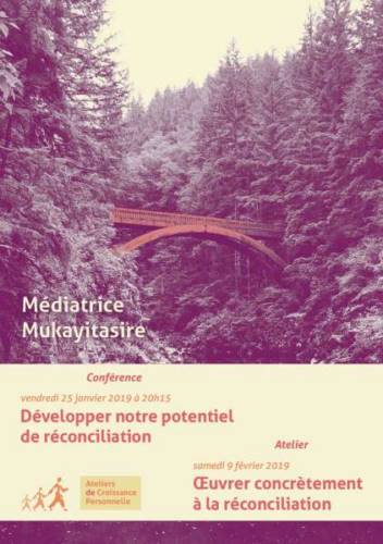 Œuvrant au cœur de la souffrance humaine, elle-même rescapée du génocide, Médiatrice peut témoigner qu’un chemin est possible pour chacun d’entre nous : éveiller ce potentiel de réconciliation que nous avons tous afin de résoudre nos conflits ou nos difficultés dans notre vie relationnelle. Elle nous introduira à sa pratique, une démarche authentique de confrontation, d’écoute mutuelle, de réconciliation et de pardon.