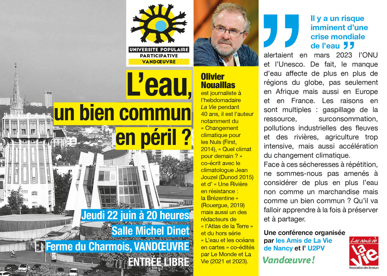 Le groupe nancéien des Amis de La Vie vous invite à une conférence donnée par Olivier NOUAILLAS, spécialiste des questions environnementales