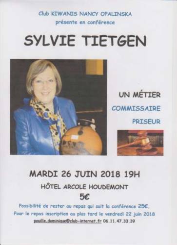 Maitre Tietgen, commissaire priseur à Nancy, nous parle de son métier. Invitée par le Kiwanis club de Nancy Opalinska, elle se prétera volontiers à des expertises d’objets ou de bijous apportés par les participants. Rendez vous le 26 juin à 19h 00 à l’hôtel Arcole Houdemont.