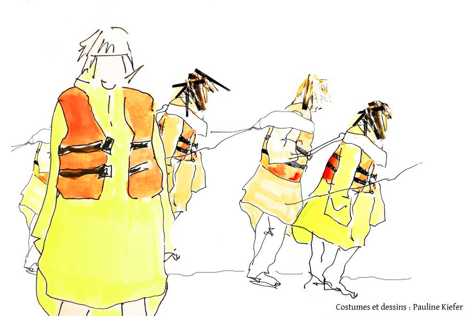 Un théâtre en deux morceaux et la ville entre les deux. De l’eau canalisée, des ponts, les quais qui nous mènent d’un lieu à l’autre. Nous tracerons une ligne entre deux points : Grande scène, Petite scène. Des corps dans l’effort, un simple déséquilibre. Une masse qui en tire une autre à contre-courant. Une rumeur qui la suit.