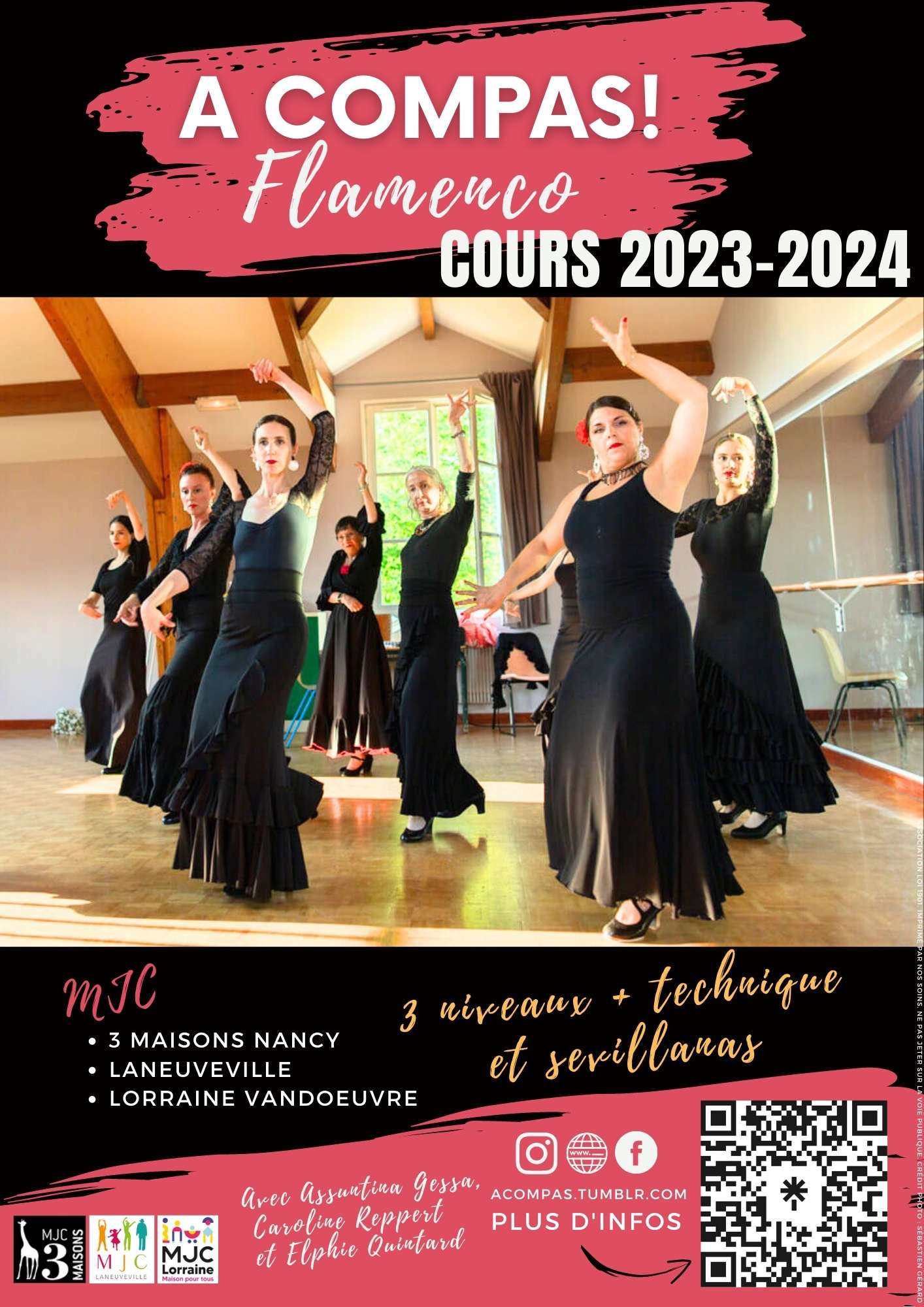 Les cours ont lieu le samedi de 9h30 à 11h00 avec Caroline Reppert, professeure de flamenco et danseuse, et sont accompagnés par un ou plusieurs musiciens (guitare, percussions, chant, ...). Un cours d'essai est possible.