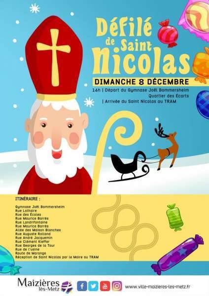 Retrouvez ci-dessous l’itinéraire qu’empruntera l’Évêque de Myre :Gymnase Joël Bommersheim > Rue Lothaire > Rue des Écoles > Rue Maurice Barrès > Rue Landrifontaine > Rue Maurice Barrès > Allée des Maisons Blanches > Rue Auguste Rolland > Rue André Jacquemin > Rue Clément Kieffer > Rue Georges de la Tour > Rue de l’Usine > Route de Marange > Réception de Saint Nicolas par le Maire au TRAM.