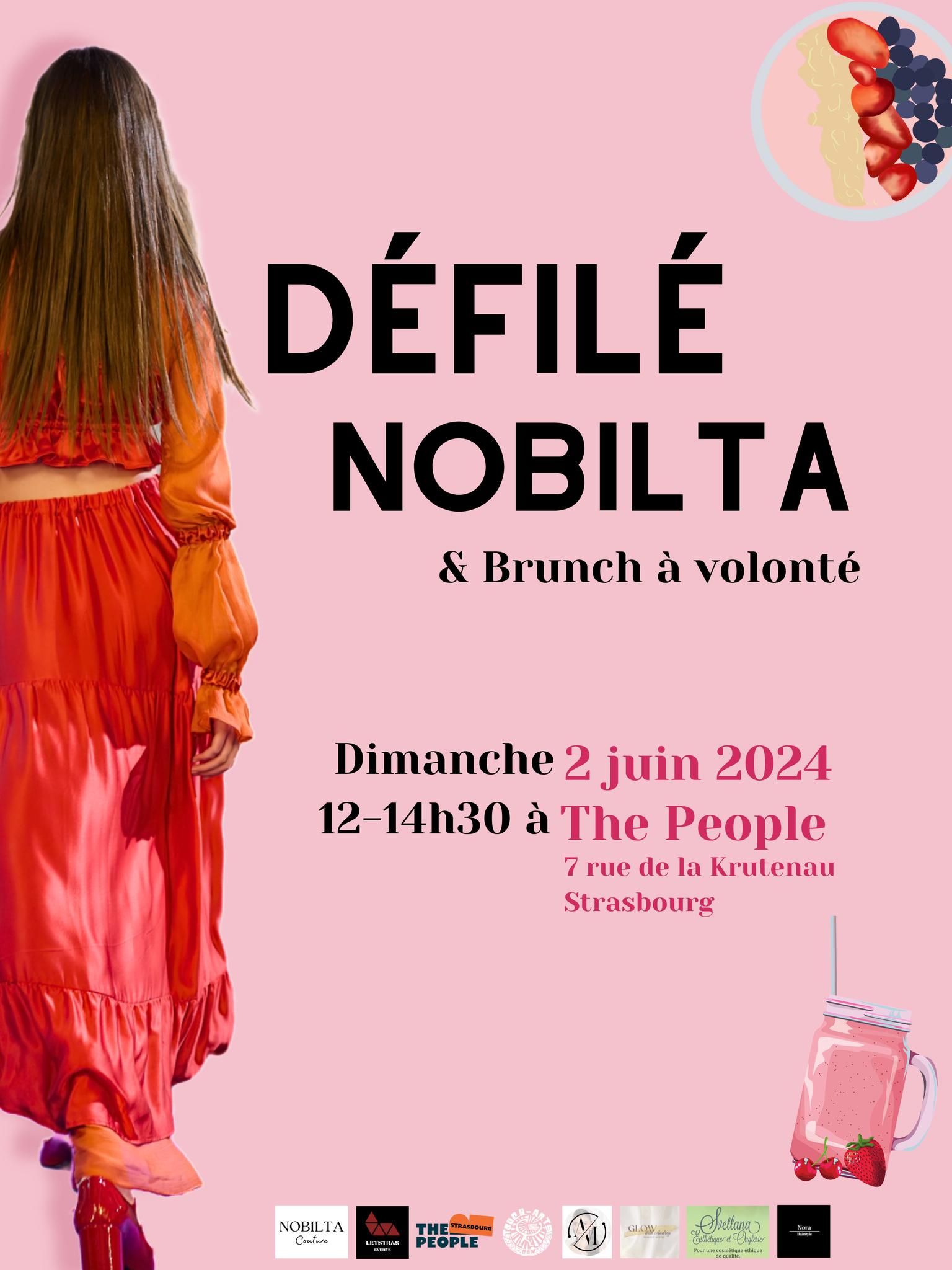Rejoignez-nous le 2 juin 2024 afin de découvrir en avant-première la nouvelle collection printemps-été de la créatrice Nobilta lors d'un brunch exceptionnel au People à Strasbourg. Le défilé de mode sera suivi d’une danse de Julie Person ! Vous pourrez ensuite rencontrer la créatrice autour du showroom