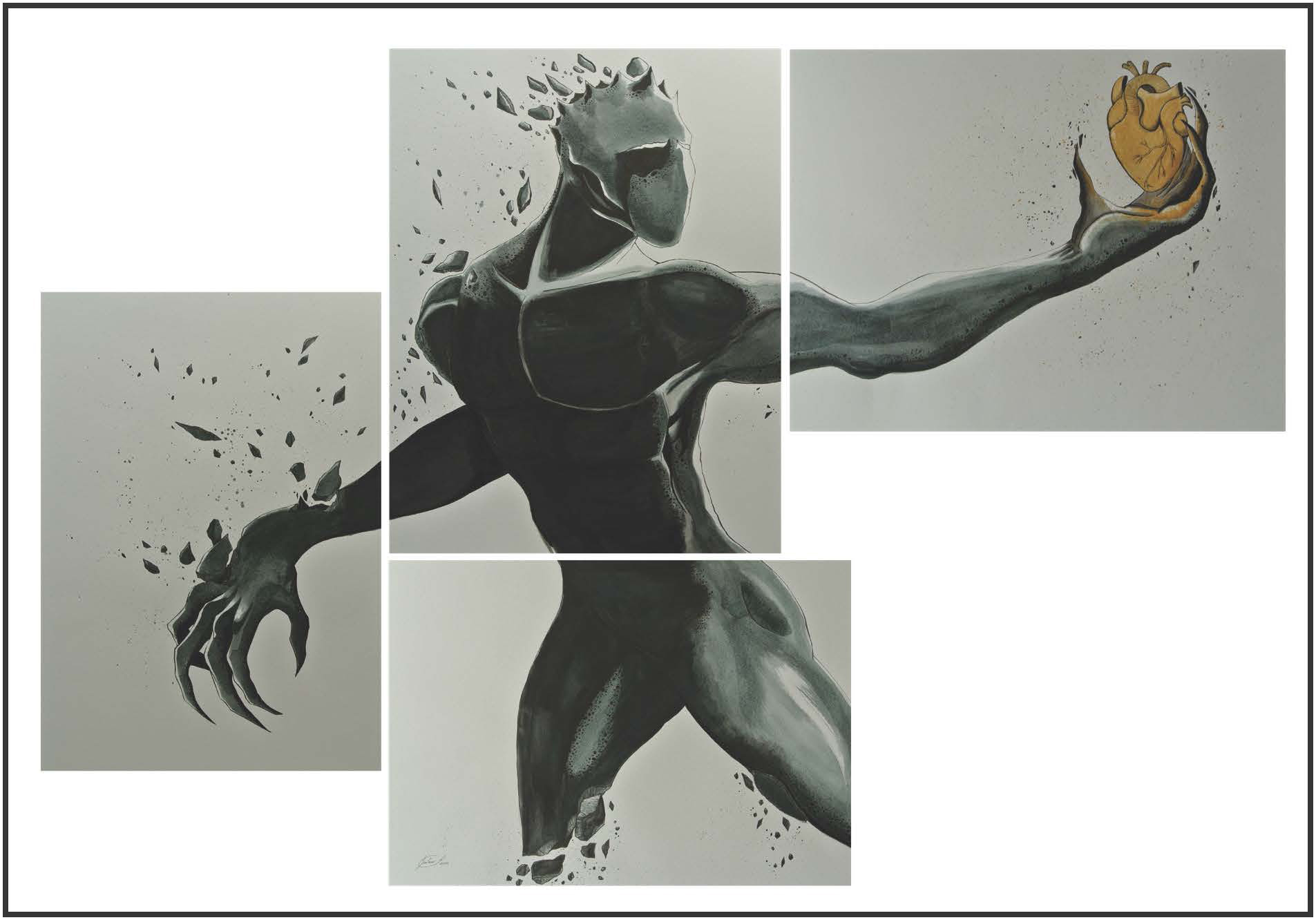 Appréhender nos relations sociales, avec notre environnement. Vivre avec un trouble psychique. Voilà le centre du travail de Santaro et qui fait écho à des réflexions personnelles. L’exposition vous renvoie à des fragments de vous-même, dans le but de vous découvrir, vous ouvrir et peut-être vous interroger… Le traitement de sujets sérieux laisse une marge d’interprétation et de liberté aux visiteurs et visiteuse. Un projet où plusieurs thèmes s’entremêlent : les émotions, les pathologies mentales ainsi que les rapports humains au sens général. Visite guidée par l’artiste.