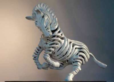 À la limite de l’abstraction, simplifiant les formes de ses sujets à l’extrême, l’artiste est en quête d’un idéal d’harmonie et d’équilibre. Modelant la figure humaine avec une perfection lisse des surfaces, il sublime l’élégance d’une femme enceinte ou la poésie fusionnelle d’un couple enlacé. Autre thème de prédilection, le règne animal qui prend ici la forme d’un bestiaire animé. Tigre en chasse, zèbre cabré, chat bondissant ou encore taureau chargeant, chaque sculpture révèle l’essence même de l’animal. Du minimal au monumental, l’oeuvre de David Potisek n’a pas fini de surprendre.
