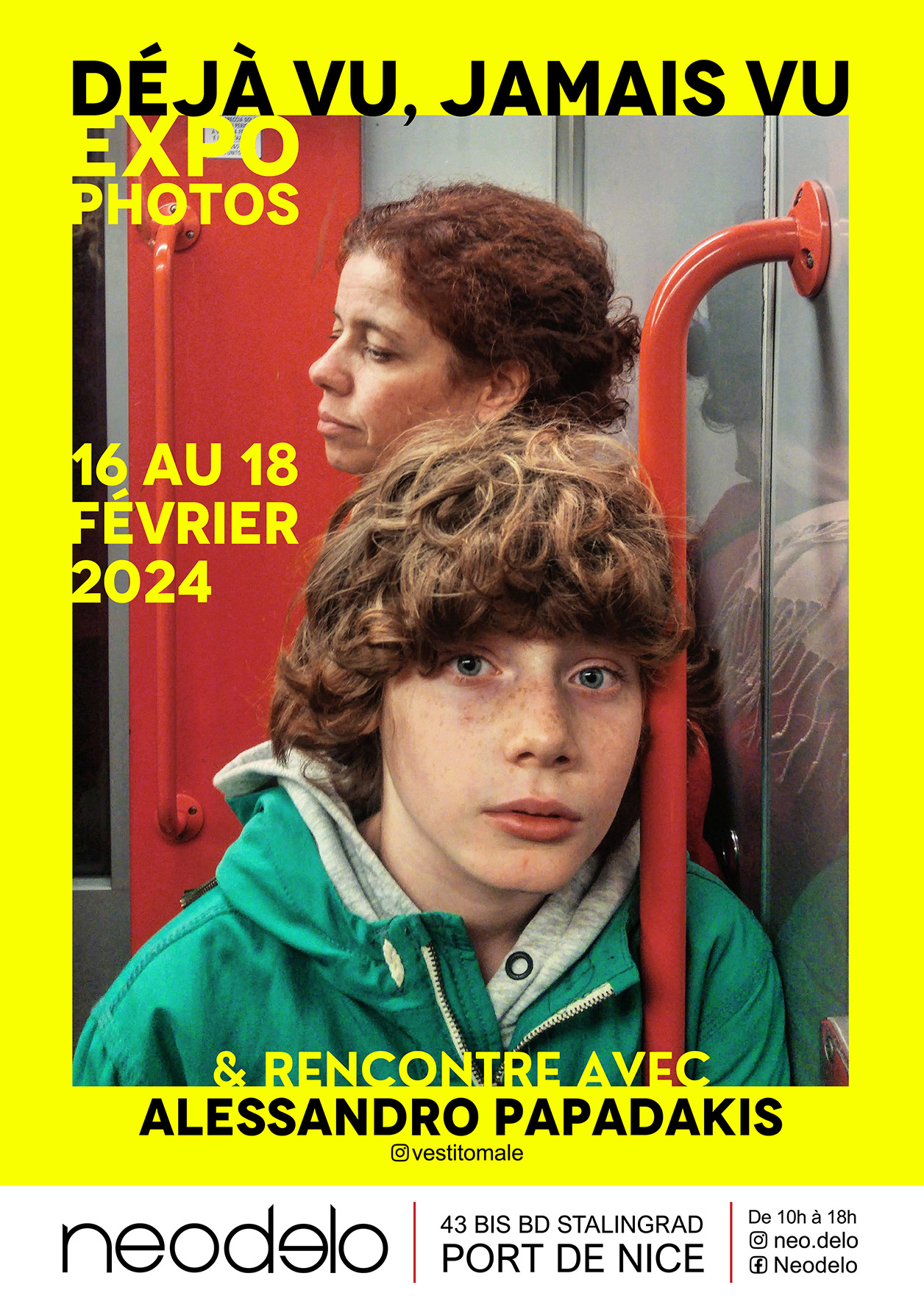Dans cette exposition, les photographies d’Alessandro Papadakis (@vestitomale) aspirent à nous guider dans l'expérience du déjà vu/jamais vu à travers des images de visages ou de fragments de réalité.