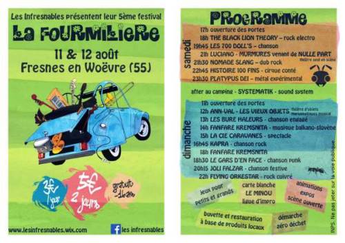 - Un site totalement approprié : en venant au festival, vous entrez dans l’univers-fourmilière : décorations, coin relaxation, œuvres éphémères, jeux en bois : de multiples activités en accès libre pour tous les âges.