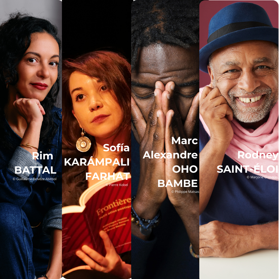 Dans le cadre de son cycle "Tout un monde en français", l'Alliance française de Paris propose une soirée poétique autour de quatre auteurs et autrices : Rim Battal, Sofia Karámpali Farhat, Marc Alexandre Oho Bambe et Rodney Saint-Éloi.