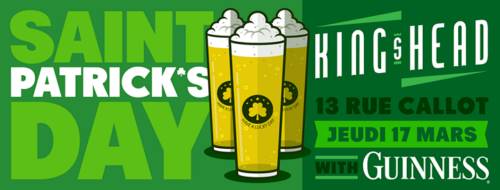 Rejoignez nous le 17 mars pour fêter la Saint Patrick au King’s Head ! La soirée promet d’être verte et Guiness, notre partenaire sera de la partie !!! Venez Nombreux !