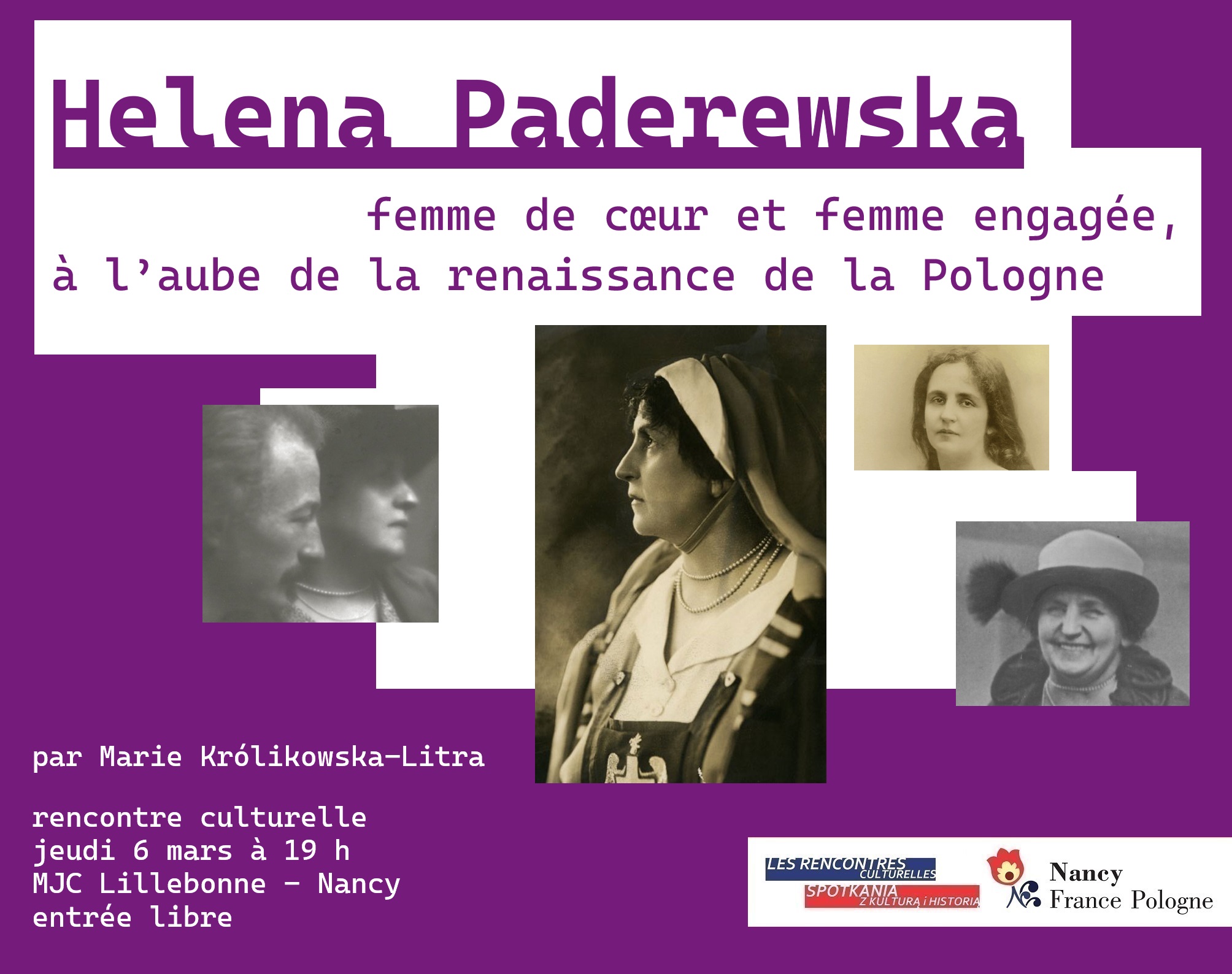 Rencontre culturelle proposée par l’association Nancy France-Pologne. Intervention de Marie Królikowska-Litra, enseignante honoraire, autrice et conférencière. Retour sur la vie d’Helena Paderewska, qui fut bien davantage que la dévouée épouse du fameux pianiste Ignacy Jan Paderewski. Entrée libre.
