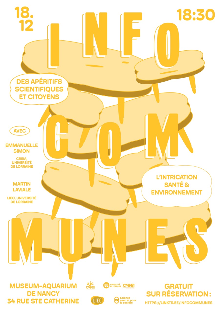 Infocommunes #8 – L’intrication santé et environnement (conférence-débat scientifique et citoyenne) : Les relations entre l’être humain et son environnement sont aussi diverses que complexes : apports bénéfiques ou délétères, préservation, utilisation... Ces boucles rétroactives impliquent que la santé de l’environnement affecte la santé humaine, et inversement. Comment prendre conscience des impacts environnementaux sur l’humain, et des impacts humains sur son milieu ? Comment anticiper les risques et trouver des réponses équilibrées ?