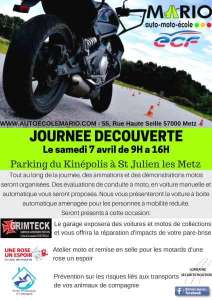 L’auto-école Mario Metz organise sa Journée découverte le samedi 7 avril sur le parking du Kinépolis à St julien les Metz.