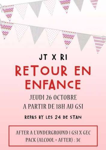 On vous attend déguisé sur le thème : Retour en enfance. Soyez créatifs et prêts à vous embiancer sur les sons de notre enfance avec les magnifiques playlists des années 2000 concoctées par le GSI’Anim !!! ??