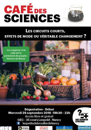 L’association Les Petits Débrouillards du Grand Nancy et son partenaire du GEC organisent un Quich’n’Sciences le mercredi 28 septembre 2016, de 19h30 à 22h au GEC ( 35 cours Leopold - Nancy ).