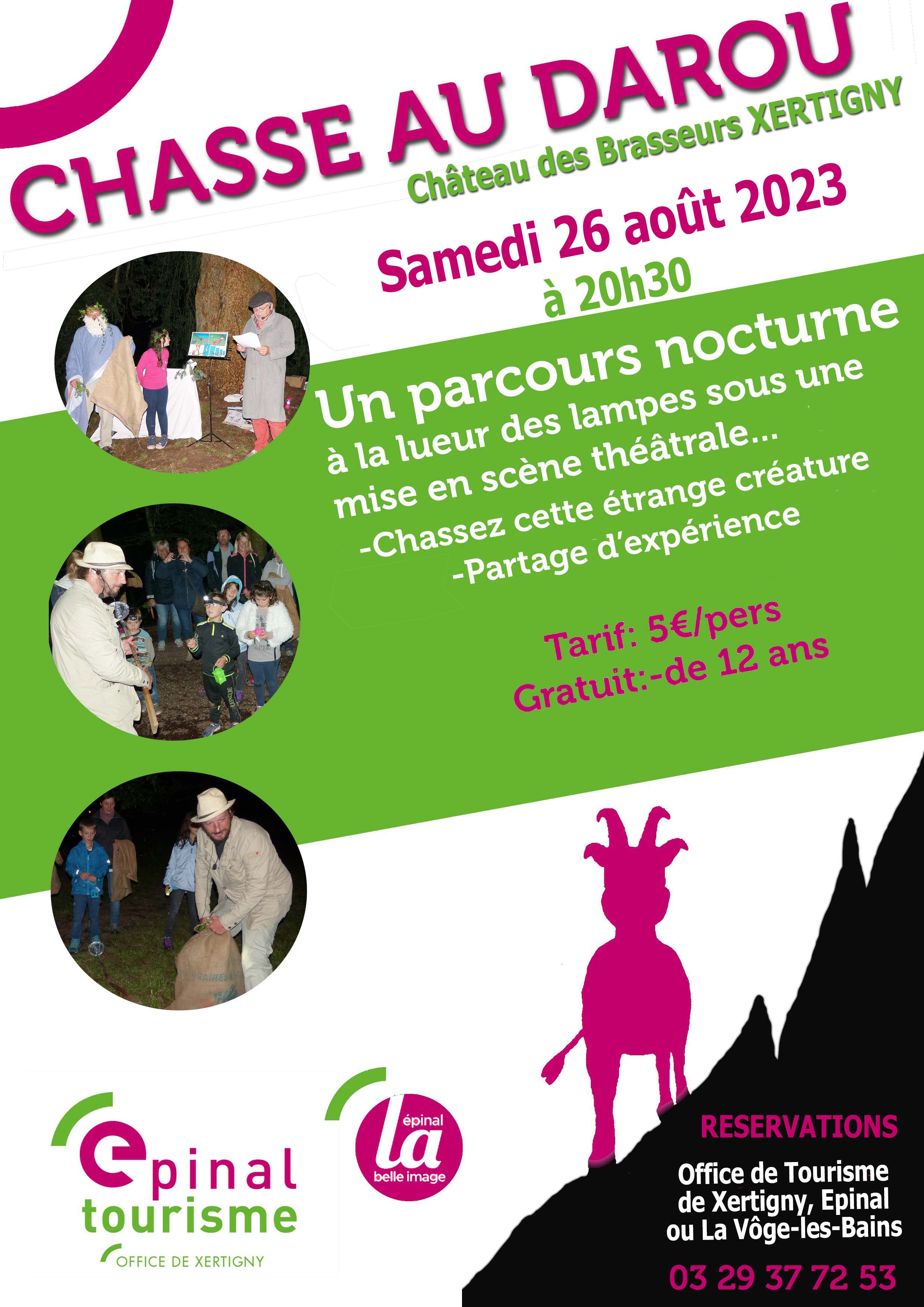 Un parcours nocturne à la lueur des lampes sous une mise en scène théâtrale... Venez chasser cette étrange créature et vous retrouver à l'issue de ce parcours pour un partage d'expérience. Sur réservation à l'Office de tourisme de Xertigny. Prévoir chaussures de marche et lampes électriques.
