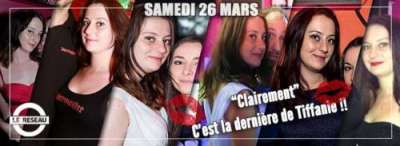 ’Clairement’ ce samedi on retourne le RESEAU pour la Dernière Soirée de notre charmante barmaid Tiffanie, et on compte sur vous pour mettre le feu ! ’Clairement’ Tiffanie tu vas prendre cher !