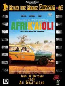 A l’heure des derniers rayons de soleil éclatants et avant de gambader dans le tas de feuilles mortes, La Projo des Petits Grégory fait sa rentrée au Graffalgar avec un beau road-trip entre potes. Un docu-fiction avec un budget de court-métrage, un tournage d’une durée de 15 jours et des séquences quasiment improvisées. Son p’tit nom c’est AFRIKA’ÏOLI. Et c’est pour ceux qui, comme d’autres, cet été, n’ont pas pu voir autre chose que les touristes au son des marteaux-piqueurs, aussi pour ceux qui souhaitent décoller une ultime fois avant d’entrer dans le traditionnel métro-boulot-dodo infernal direction mois d’juin. Et pour ce p’tit brin d’air frais, humain, qui nous met de bonne humeur on dit "merci m’sieur Christian Philibert !".