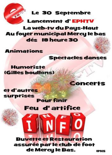 E PH Tv : La télévision du Pays Haut ouvre officiellement ses portes le vendredi 30 septembre 2016 au Foyer Municipal de Mercy le Bas.