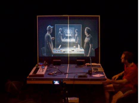 Un artiste et son collaborateur travaillent dans leur atelier sur plusieurs projets artistiques. La journée commence comme une réunion informelle entre deux amis et peu à peu se transforme en une intense journée créative. Autour d’une table de ping-pong désordonnée, l’artiste et son collaborateur échangent des idées pour de futurs projets. Une partie de cette table sert de surface de projection. On y voit des vidéos des répétitions, matériaux d’autres pièces à différentes étapes du processus de création, des idées pour des futures créations et d’autres écartées et mises dans la corbeille de l’ordinateur.