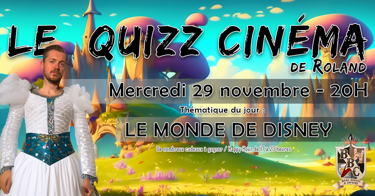 🎶✨ Le 29 novembre, le BBC vous invite à une soirée féerique qui vous plongera dans l'univers magique de Disney. C'est une soirée ciné-quiz spéciale, où les mondes enchantés, les princesses, et les héros animés prennent vie sous les projecteurs.