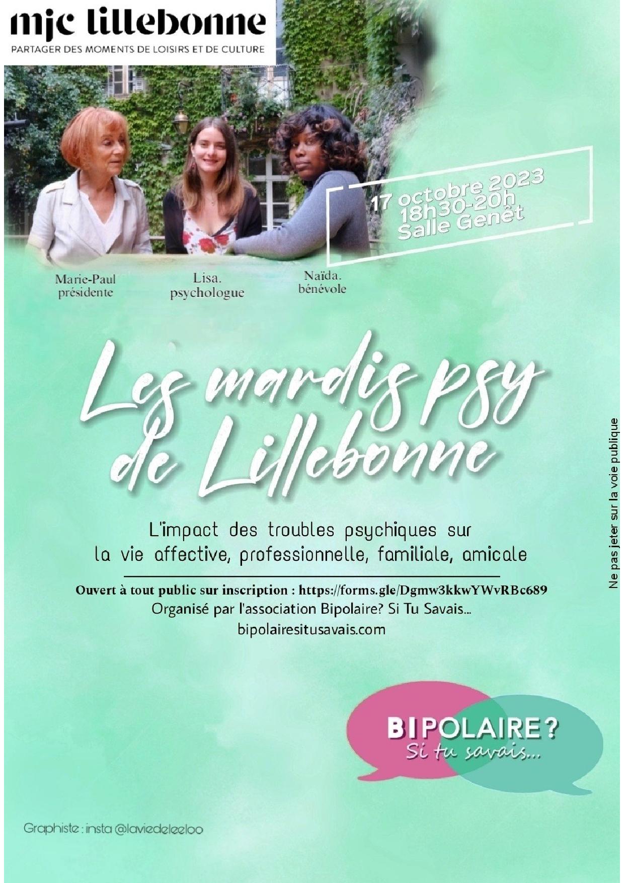 Thème du Mardi Psy de Lillebonne du 17 octobre : L'impact des troubles psychiques sur la vie affective, professionnelle, familiale, amicale.