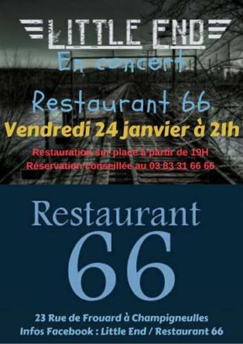 Little End au restaurant 66 à Champigneulles à partir de 21h30, entrée libre.