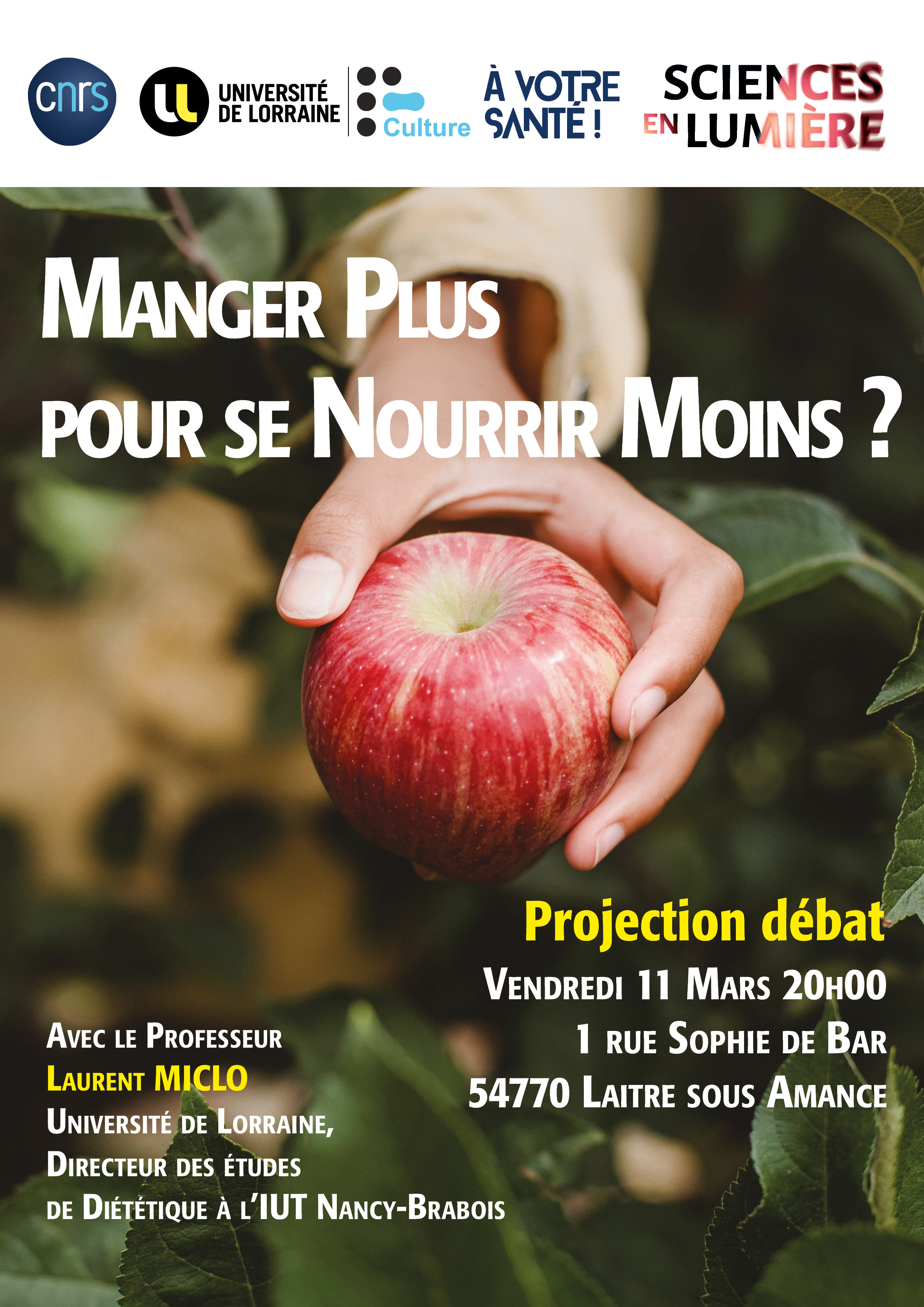 Projection suivie d'un échange avec Laurent Miclo, Professeur des Universités à l’Université de Lorraine et Directeur d’études en Diététique à l’IUT Nancy- Brabois.