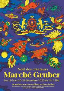 Cette année encore, les créateurs et créatrices du parc Gruber vous invitent à leur Marché de Noël, le week-end du 13-14 et le week-end du 20-21 décembre de 11h à 19h.