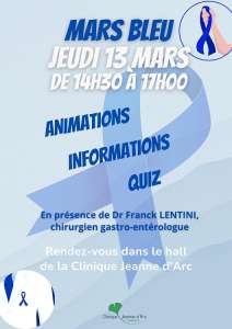 Dans le cadre de Mars Bleu, la Clinique Jeanne d’Arc se mobilise pour sensibiliser au cancer colorectal et à l’importance du dépistage.