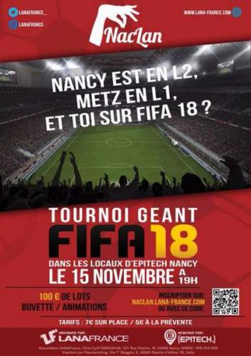L’association LANA France découvre de nouveaux horizons ! Nous croyons en Fifa c’est pourquoi nous organisons le premier tournoi Fifa 18 géant à Nancy !