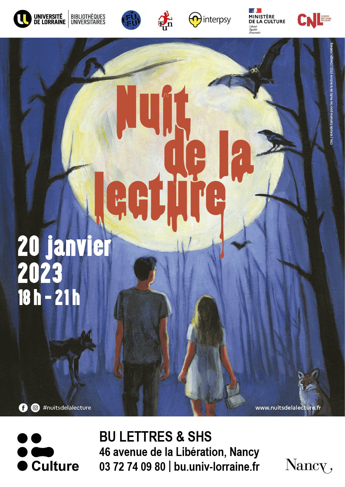 Rendez-vous à la bibliothèque universitaire de Lettres, Sciences humaines et sociales de Nancy le vendredi 20 janvier 2023, de 18h à 21h. L'entrée est libre et gratuite.